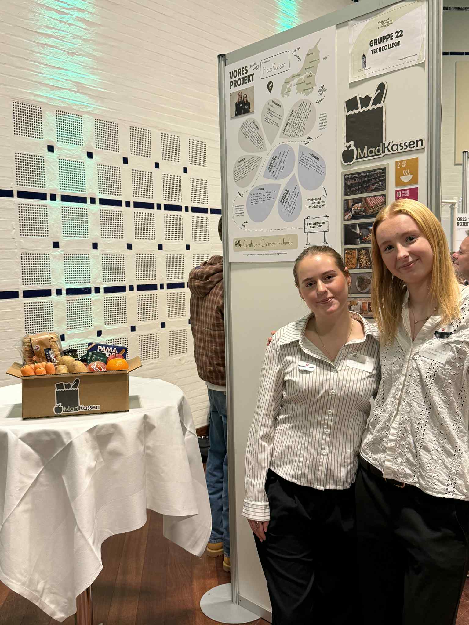Deres idé hedder “Madkassen”. Et samarbejde mellem de to piger, Coop365 i Dronninglund, FGU og Blå Kors. Overskudsfødevarer bringes til FGU hvor eleverne der tilbereder mad, som serveres til udsatte familier via Blå Kors’ arrangementer.