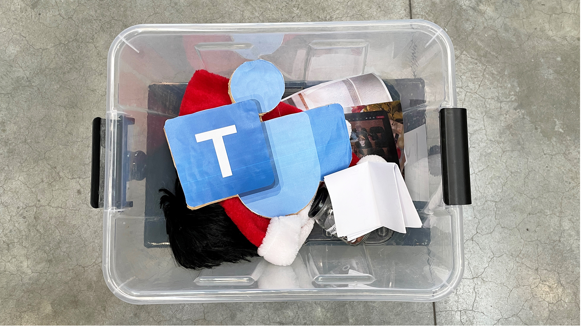 I tidskapslen kommer der også et Teams-skilt og en mikrofon for alle de timer, eleverne har brugt bag skærmen. En anden elev fortæller, at de vil bidrage med en minkpels som symbol på aflivningen af alle landets mink. En nissehue kommer også i kassen for at huske på julen, der var i fare. Endnu en elev går på scenen og varsler, at der vil komme en halv flaske vodka i tidskapslen: