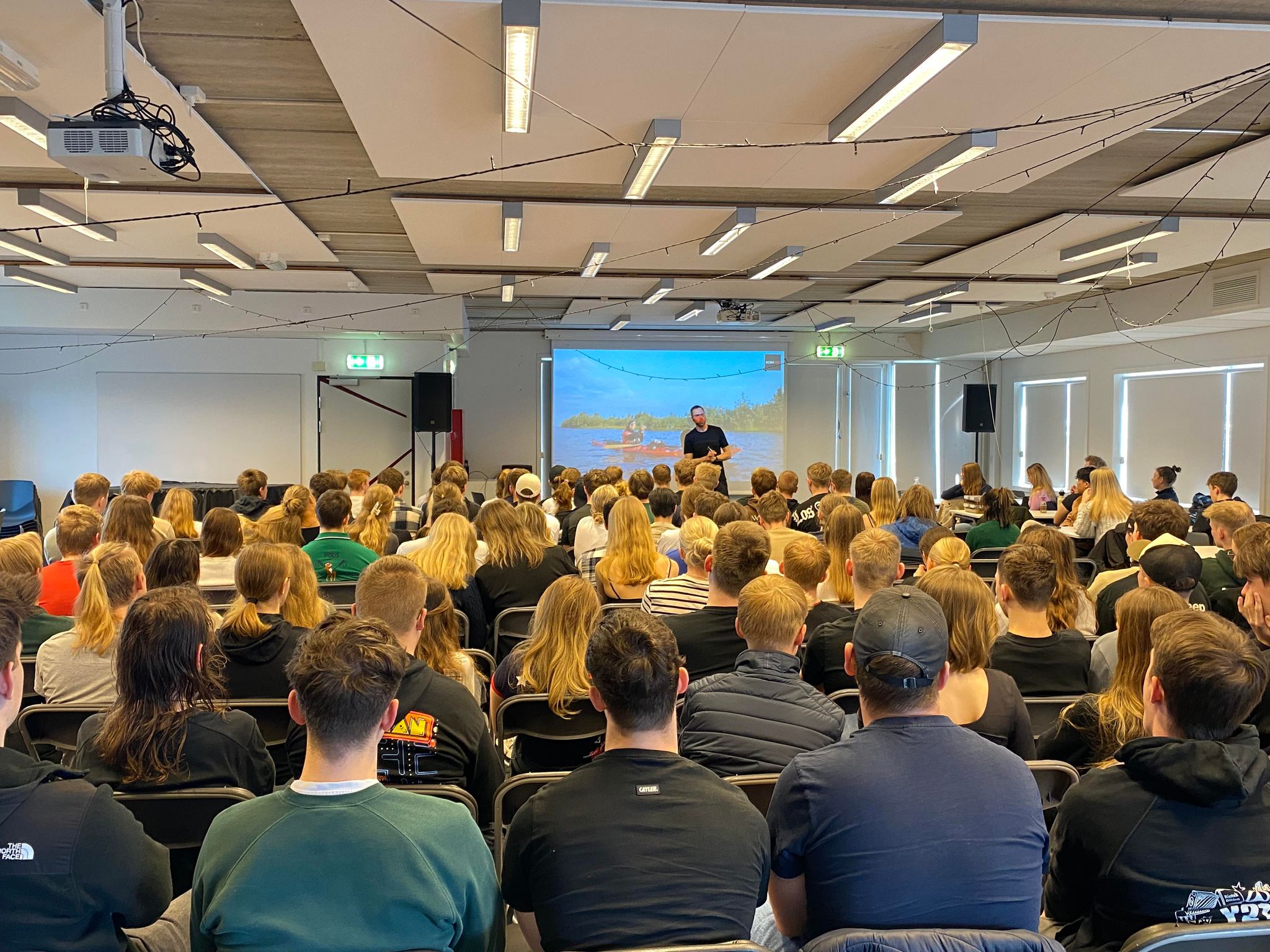 Erik B. Jørgensen, der blandt andet beskriver sig selv som eventyrer, polarfarer og jægersoldat, og som er særlig kendt for sin deltagelse i TV2-programmet "Korpset", leverede i dag et levende og inspirerende oplæg for en stor gruppe meget interesserede elever fra skolens valgfag i psykologi og den særlige studieretning "Beredskabslinjen". Beredskabslinjen har i forvejen et tæt samarbejde med flyvevåbnet og militæret, og Erik B. Jørgensens karriere i forsvaret er en stor inspiration for netop disse elever.